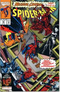 The series was a massive sales success with over 2.5 million copies printed. McFarlane stayed on the title until issue #16 (November 1991) in which the story was printed in a landscape format. He would go on to create the character Spawn and help found Image Comics in 1992. He was succeeded on the title by Erik Larsen, who had succeeded McFarlane on The Amazing Spider-Man two years earlier, and would later join him in the founding of Image. Larsen wrote and drew the six-issue story arc “Revenge of the Sinister Six” (#18–23). Writer Don McGregor and artist Marshall Rogers crafted a two-part story in issues #27–28 dealing with gun violence.