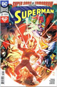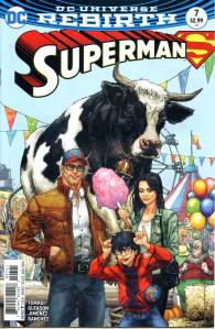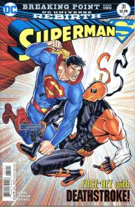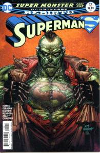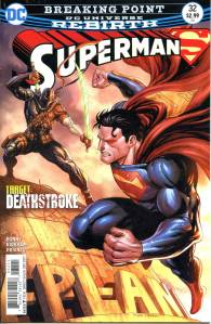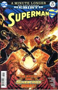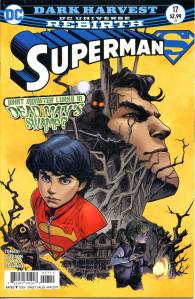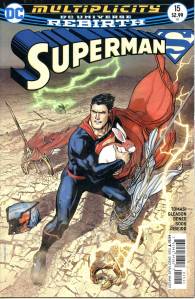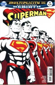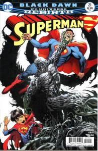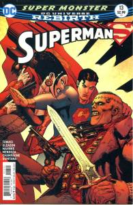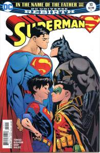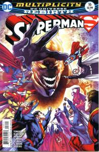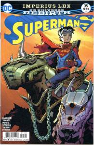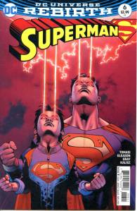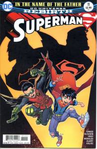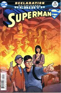 In June 2016, DC Comics once again relaunched its comic book titles with DC Rebirth. The publisher re-established the pre-New 52 Superman as the protagonist of the new comic books, with Lois Lane as his wife once more. He and Lois also conceive a biological son, Jonathan Samuel Kent, who eventually becomes Superboy. The story arc Superman Reborn smooths over the discrepancies between the two versions of the character. According to Mister Mxyzptlk, the creation of the New 52 caused Superman to be separated into two people: the New 52 character that served as the protagonist of the Superman books and the pre-Flashpoint character that took part in the Convergence event and sired Jon. Thanks to Jon, the new Superboy, the two Supermen merge into one complete version of Superman, rearranging their shared histories and accommodating them into the restored DC Universe. This complete Superman features a new suit that combines elements from the two eras. DC Comics ended the Rebirth branding in December 2017, opting to include everything under a larger “DC Universe” banner and naming. The continuity established by Rebirth continues across DC’s comic book titles, including volume one of Action Comics and the fourth volume of Superman.