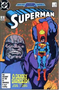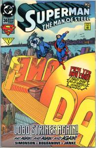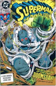 Writer/artist Dan Jurgens worked on the title from 1989–1991. Hank Henshaw, a character who would later become the Cyborg Superman, first appeared in issue #466 (May 1990). By the late 1980s, the plots of the Superman books were often linked. To coordinate the storyline and sequence of event, from January 1991 to January 2002, “triangle numbers” (or “shield numbers”) appeared on the cover of each Superman comic book. During these years, the Superman storylines ran with the story continuing through the titles Superman, Action Comics and later in two further series, Superman: The Man of Steel and Superman: The Man of Tomorrow.
