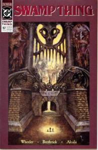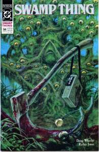 In 1984, editor Len Wein assigned Swamp Thing to British writer Alan Moore. When Karen Berger took over as editor, she gave Moore free rein to revamp the title and the character as he saw fit. Moore reconfigured Swamp Thing’s origin to make him a true monster as opposed to a human transformed into a monster. In his first issue, he swept aside most of the supporting cast Pasko had introduced in his year-and-a-half run as writer, and brought the Sunderland Corporation to the forefront, as they hunted Swamp Thing and “killed” him in a hail of bullets. The subsequent investigation revealed that Swamp Thing was not Alec Holland’s consciousness transformed into a plant but actually a form of plant life that had absorbed Holland’s consciousness after exposure to his work, with Swamp Thing’s appearance being the plants’ attempt to duplicate Holland’s human form.