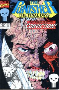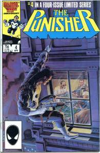 The miniseries premiered with a January 1986 cover date. It was bannered on the cover as the first of four; although the series had always been intended to be five issues long, and the banner was an error that recurred throughout the entire run. The plot changed from Grant’s initial story, though the basic concept remained the same. An important element of the story was a retcon that explains that many of the Punisher’s more extreme actions to this point were the result of being poisoned with mind-altering drugs.