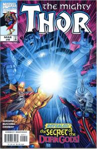 After “Hereos Reborn”, Thor and several members of the Avengers battle the Destroyer. Thor is saved by an enigmatic being called Marnot, who binds the life-force of a mortal called Jake Olson to the thunder god. Thor enters into a war with the Dark Gods with Marnot revealed to be Hescamer, one of Odin’s ravens; and battles the returning Enchanters Three.