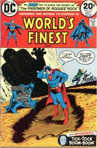 World’s Finest was initially a 96 page quarterly anthology, featuring various DC characters – always including Superman and Batman – in separate stories. Comics historian Les Daniels noted that “Pairing Superman and Batman made sense financially, since the two were DC’s most popular heroes.” When superheroes fell out of vogue in the early 1950s, DC shortened the size of the publication to that of the rest of its output, leaving only enough space for one story; this led to Superman and Batman appearing in the same story together starting with World’s Finest Comics #71 (July 1954). The series continued to feature Superman and Batman team-ups until issue #197. Noted Batman artist Neal Adams first drew the character in an interior story in “The Superman-Batman Revenge Squads” in issue #175 (May 1968).