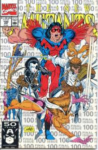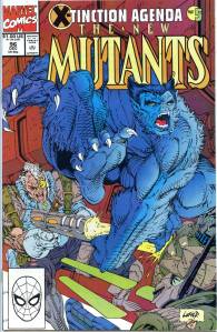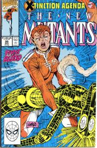 Sales of The New Mutants had slumped for several years in the late 80’s, but took a sharp upturn after Rob Liefeld took over the penciling and co-plotting chores at the end of 1989. A new mentor for the group, the mysterious mercenary Cable, was introduced, further helping sales. Over the next year, several longtime team members were written out or killed off. However, the relationship between Liefeld and Simonson was fraught with tension, and Simonson claims that Harras dealt with the situation by rewriting her plots and dialogue so that the characterizations did not make sense: “Although I wasn’t being fired, I think I was being shoved out the door with both hands by Bob Harras. Bob was only doing what he had to do, I expect, which was make Rob Liefeld happy.” Simonson eventually gave in, leaving after issue #97. When Liefeld and Fabian Nicieza, who wrote dialogue based on Liefeld’s plots, took over as writers of the final three issues of the series, they included several harder-edged characters.